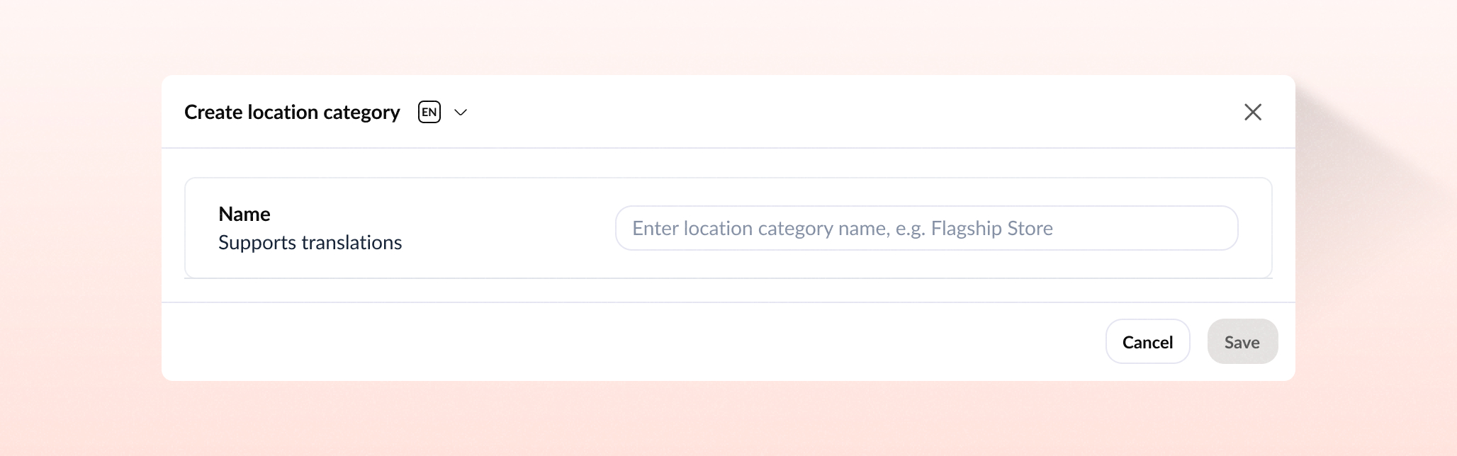 A Location Category is a label you assign to locations to group them by type. For example, you might create categories like Flagship, Outlet, or Wholesale to make it easy to filter and target specific groups of locations across your organisation.